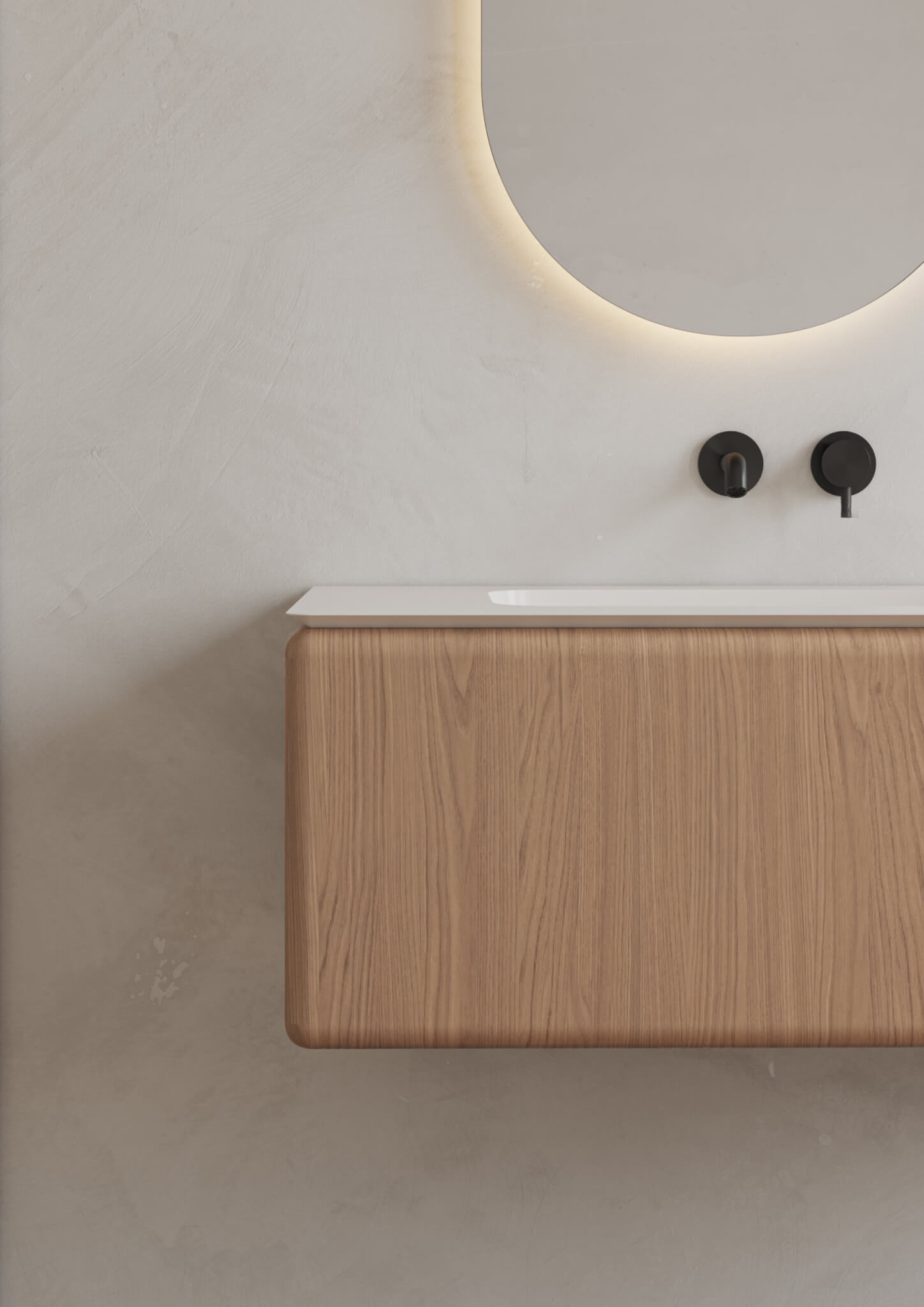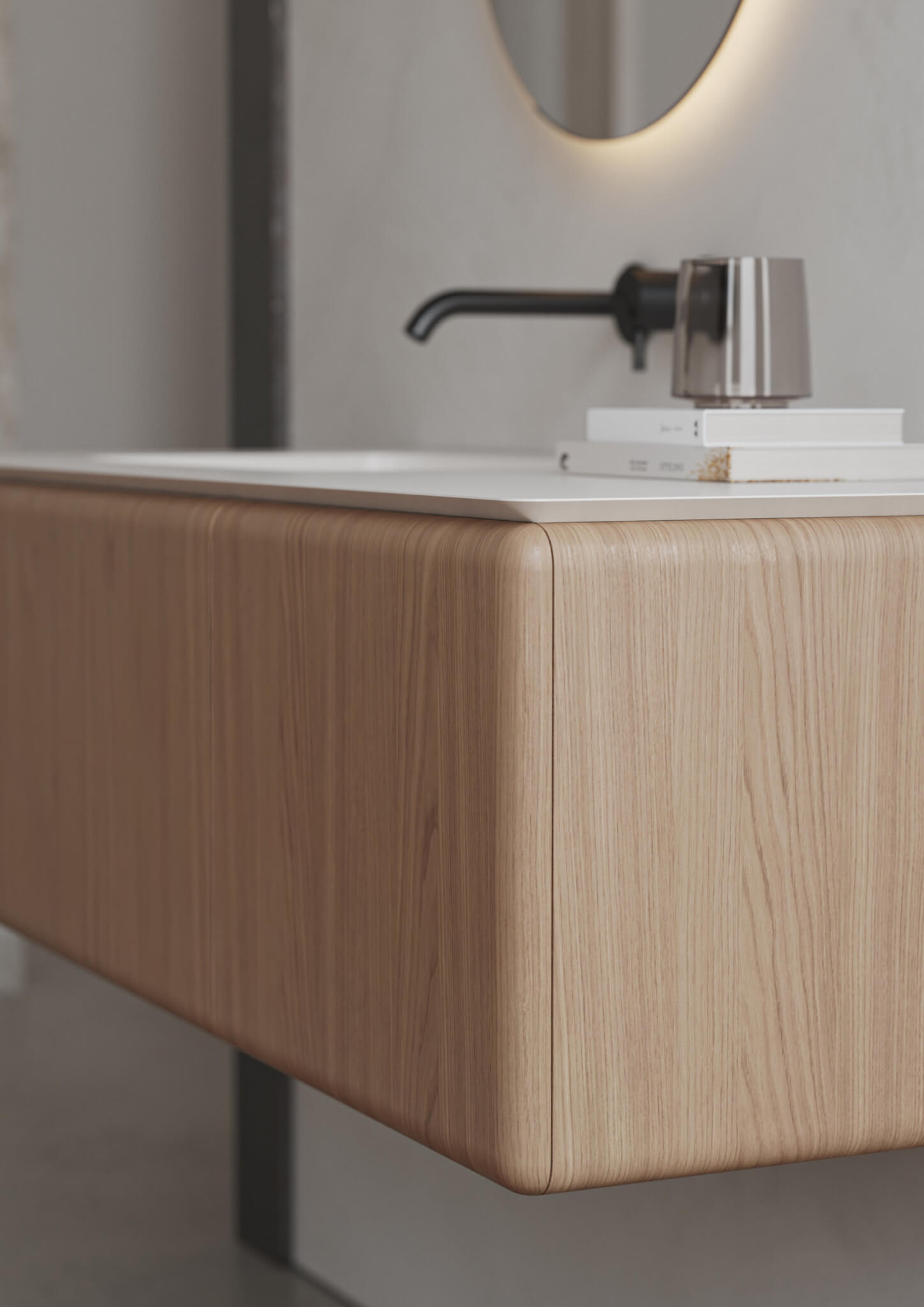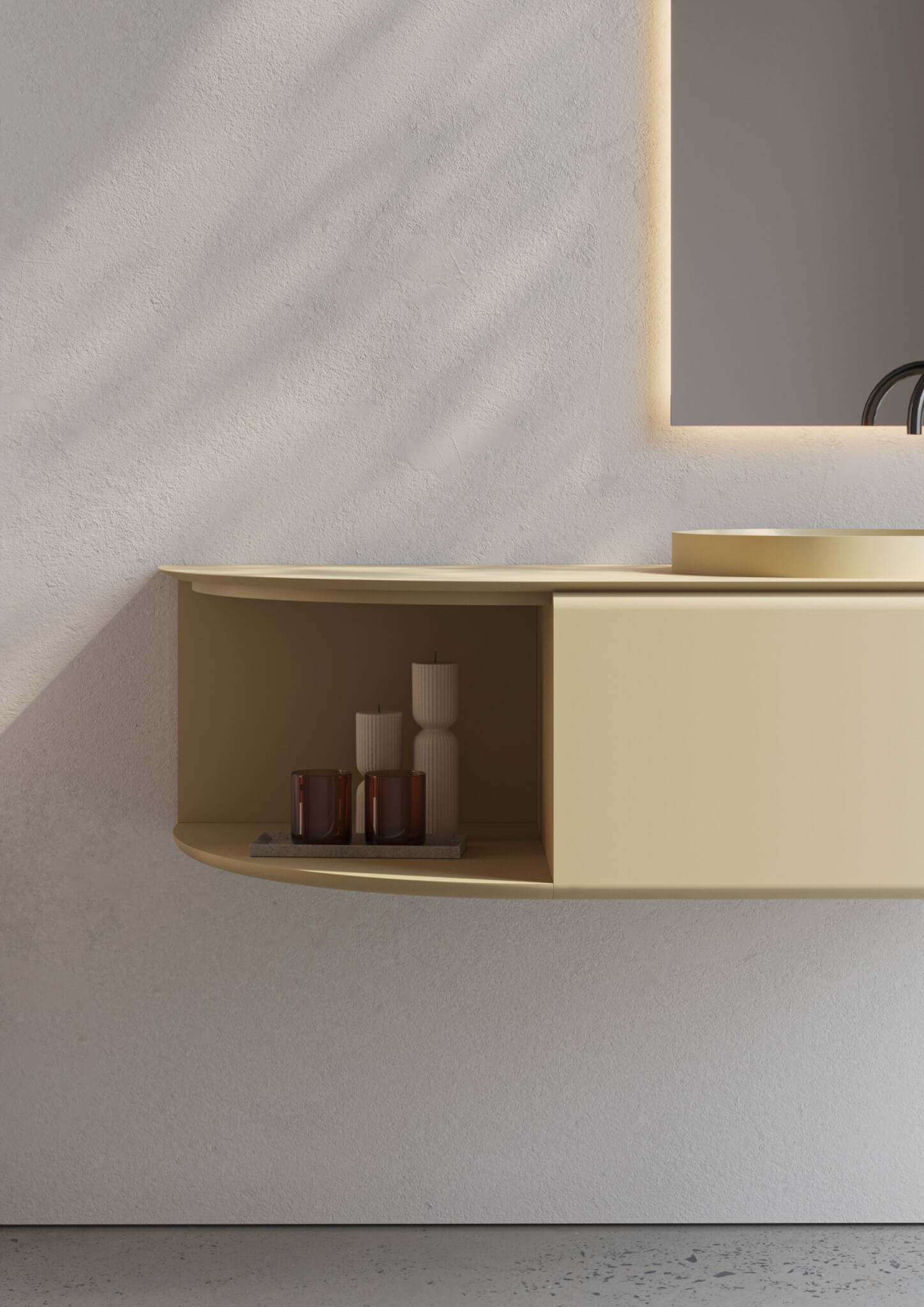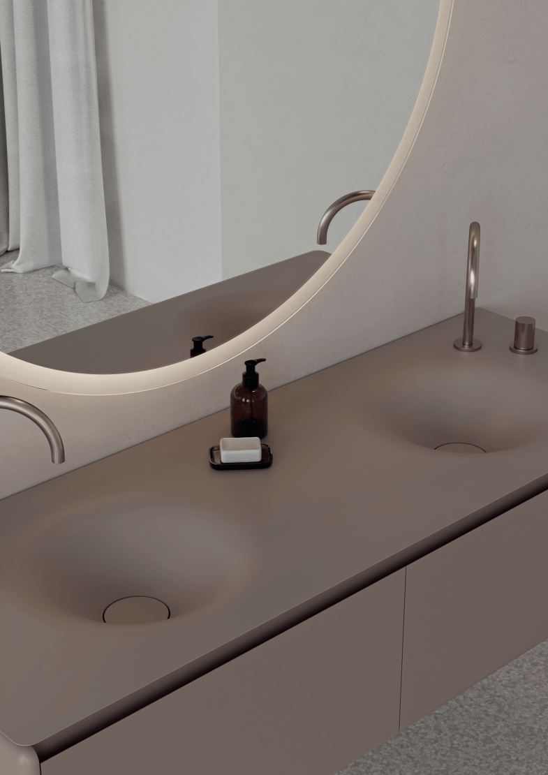 A grande mais-valia da BOLD reside na sua modularidade inteligente, que acompanha o desenho da arquitetura em vez de o limitar. As configurações são flexíveis e adaptáveis a diferentes tipologias de casa de banho, desde suites compactas a master bathrooms com exigência estética elevada. A fluidez das formas monolíticas e o caráter escultórico das peças conferem ao conjunto uma presença distintiva, adequada a ambientes minimalistas, orgânicos ou contemporâneos.
