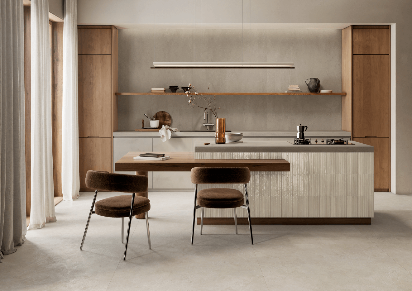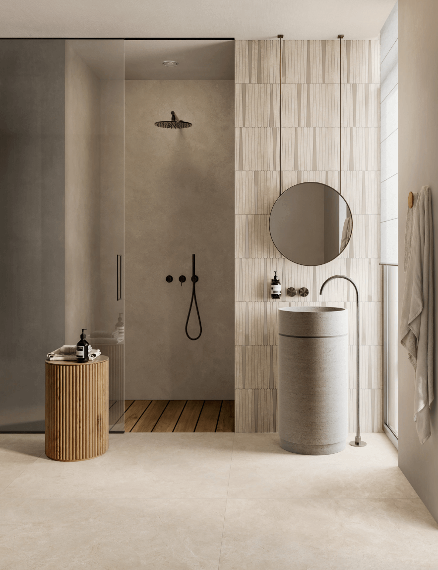 Este enfoque permite a criação de ambientes que equilibram sutileza, requinte e forte impacto visual, ao mesmo tempo que mantêm a praticidade e durabilidade que a cerâmica oferece.