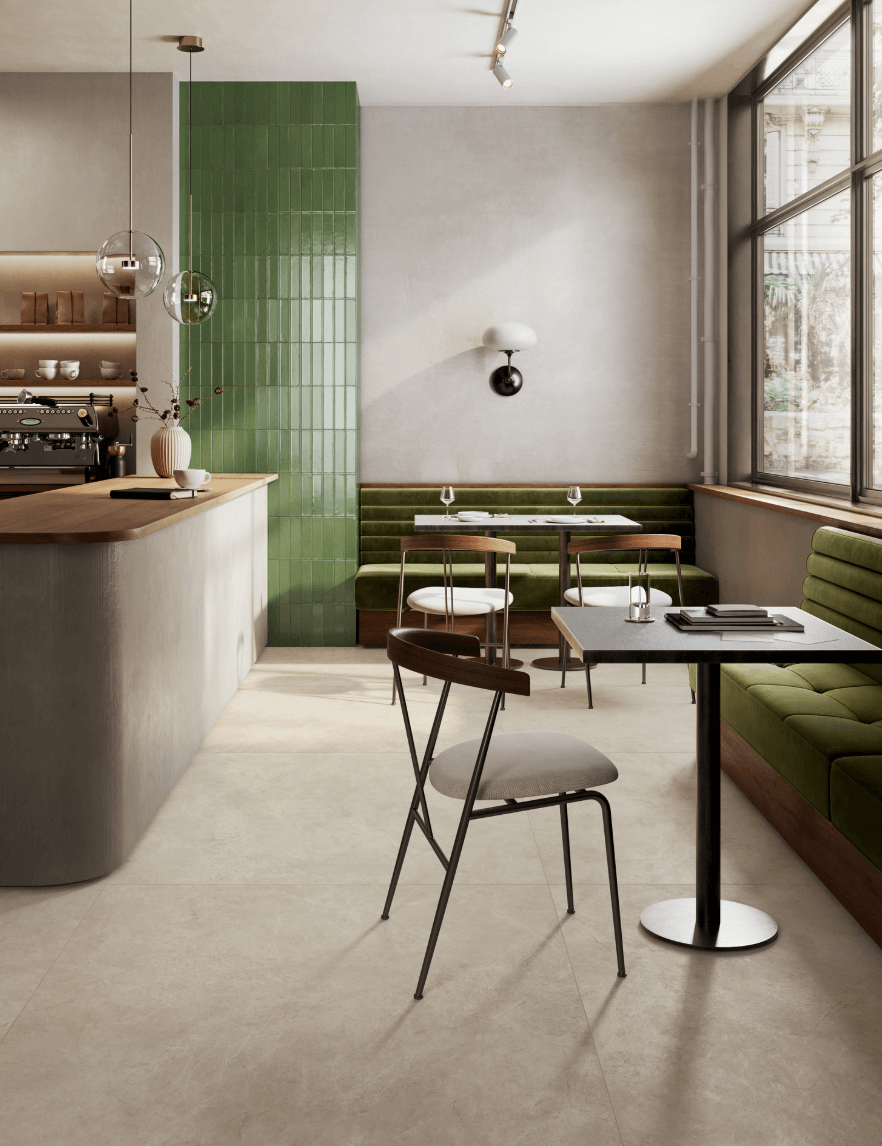 Estas qualidades são particularmente valiosas em esquemas nos quais a cerâmica desempenha um papel central na narrativa visual do espaço, elevando a perceção de qualidade e coesão no resultado final.